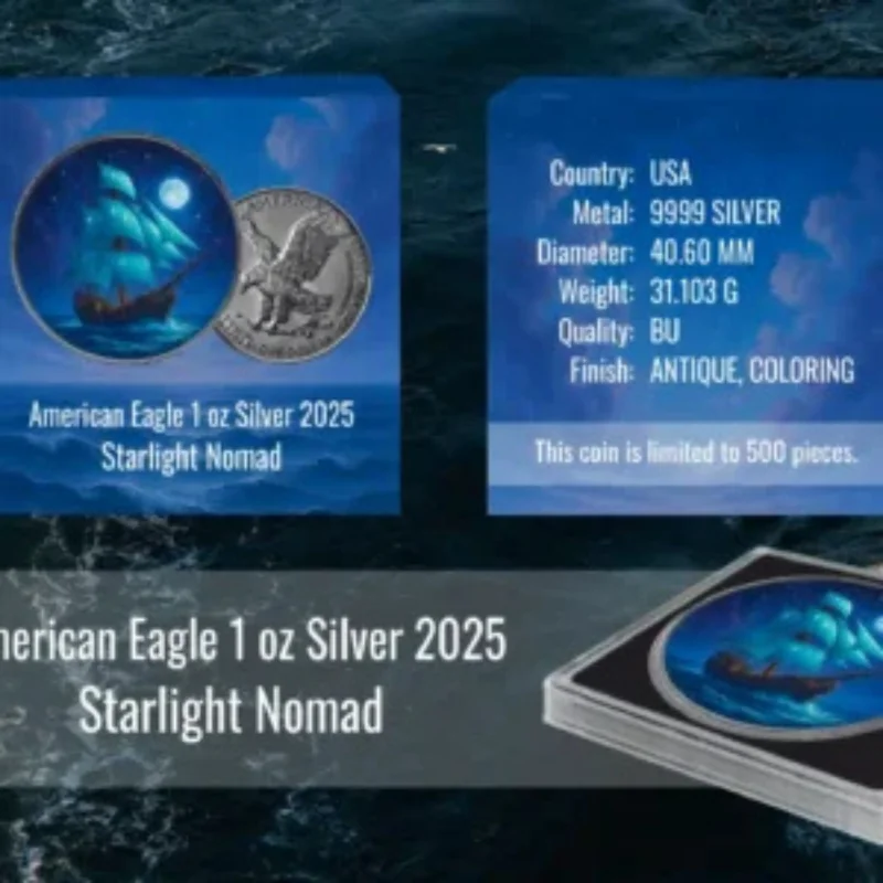 מטבע כסף צבעוני American Eagle – Masters of the Seas – Starlight Nomad 1 Oz 2025 הוא חלק בסדרת "Masters of the Seas", המוקדשת לספינות.