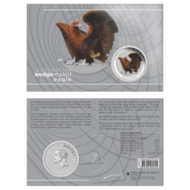 Australian Wedge – Tailed Eagle Silver Color Coin 1 Oz 2025 (In Card)