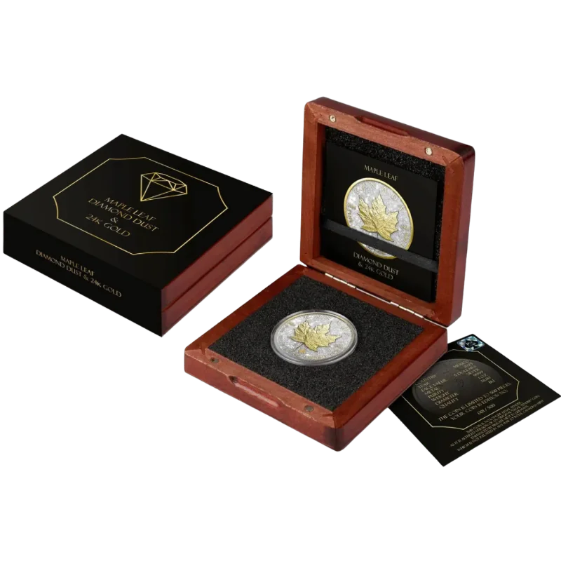 Canadian Maple Leaf Diamond Dust Silver Gilded Coin 1 Oz 2025