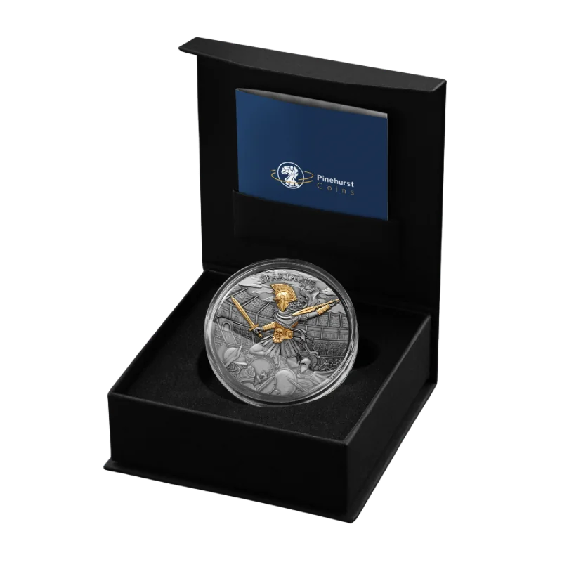 מטבע כסף בציפוי זהב חלקי וגימור עתיק “Spartacus 2 Oz 2024” מסדרת "הלוחמים האגדיים", מוקדש ללוחמים המפורסמים ביותר בהיסטוריה.