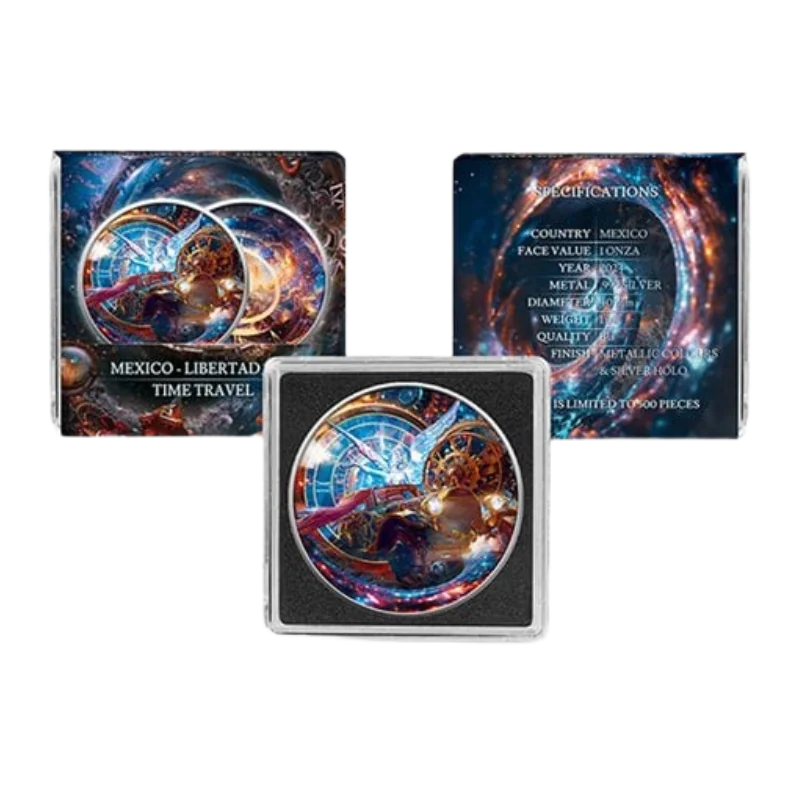 מטבע כסף צבעוני Libertad Time Travel 1 Oz 2024 הופק ע״י מקסיקו וגרמניה מינט.