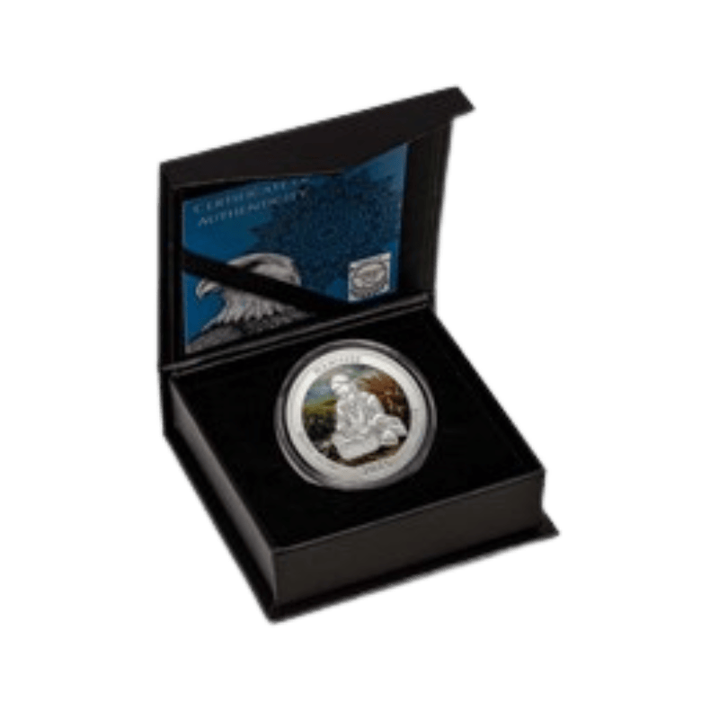 מטבע כסף צבעוני Native America The Beautiful – Rhode Island Silver Color Coin 1 Oz 2025 מסדרת "אמריקה הילידית היפה", שנוצרה על ידי מטבעת הילידים האמריקאים, מדגישה מקומות היסטוריים ונושאים של תוכנית "אמריקה היפה" של מטבעת ארה"ב דרך נקודות המבט של העמים הילידים של צפון אמריקה. זוהי מהדורה ה-43 של רוד איילנד בסדרה ומציג את אנשי ניאנטיק בצפון מזרח ואת הקשר ארוך השנים שלהם לאי בלוק.