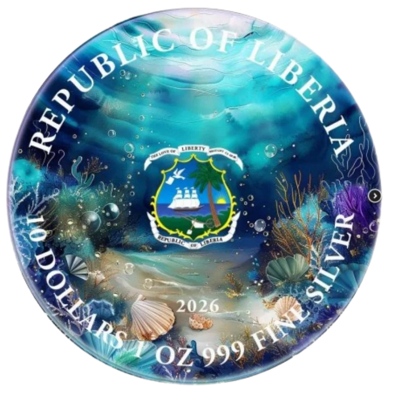 מטבע כסף צבעוני Whispers of the Deep Mermaid Silver Color Coin 1 Oz 2026 מציג את בת הים.